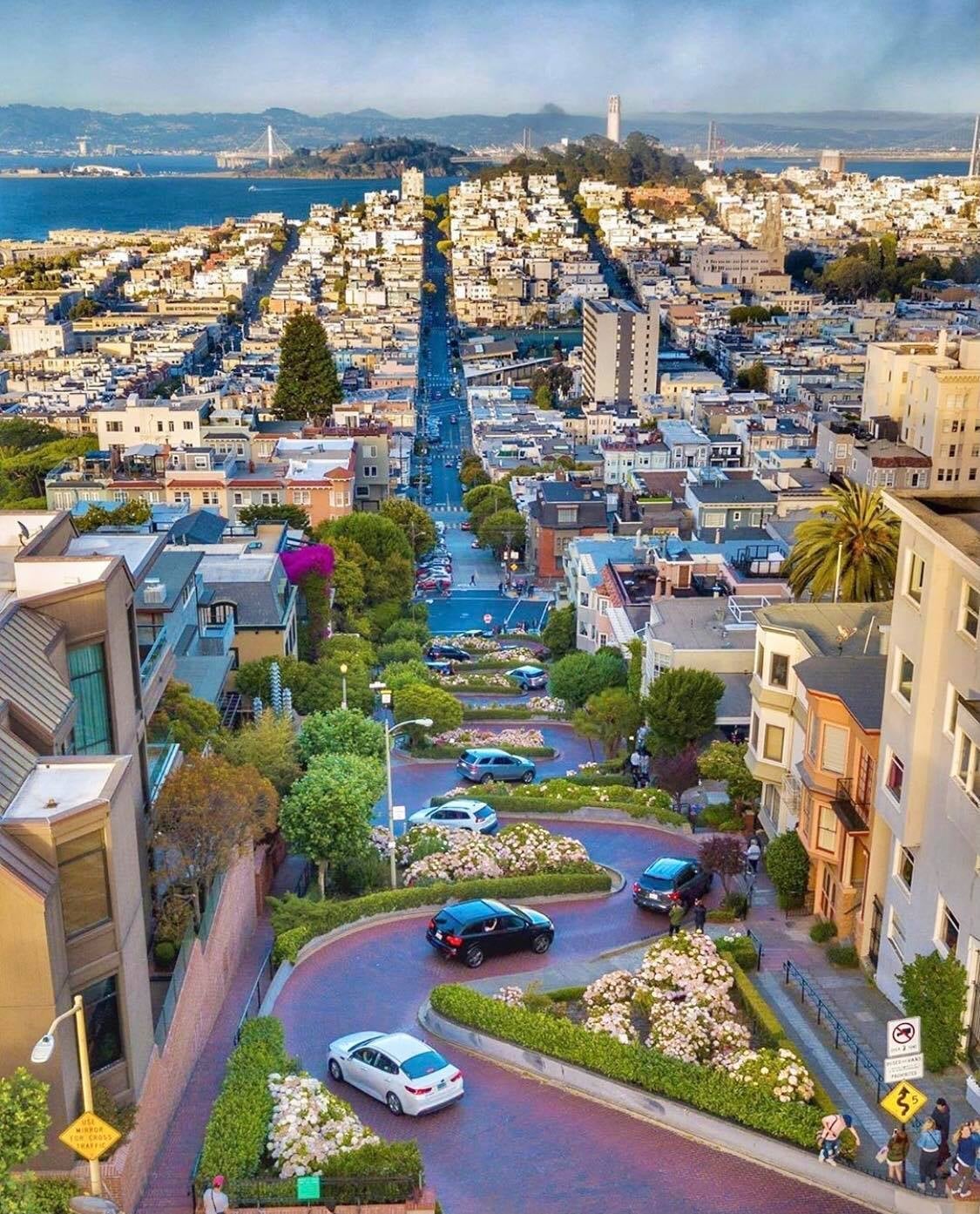 Famous Lombard Crooked Street & Golden Gate Bridge in San Francisco